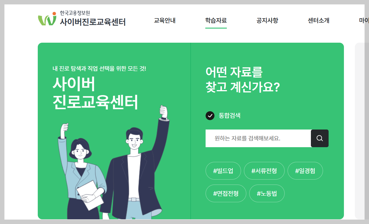 <<<< 한국고용정보원 사이버진로교육센터 홈페이지 바로가기 ▼ >>>>