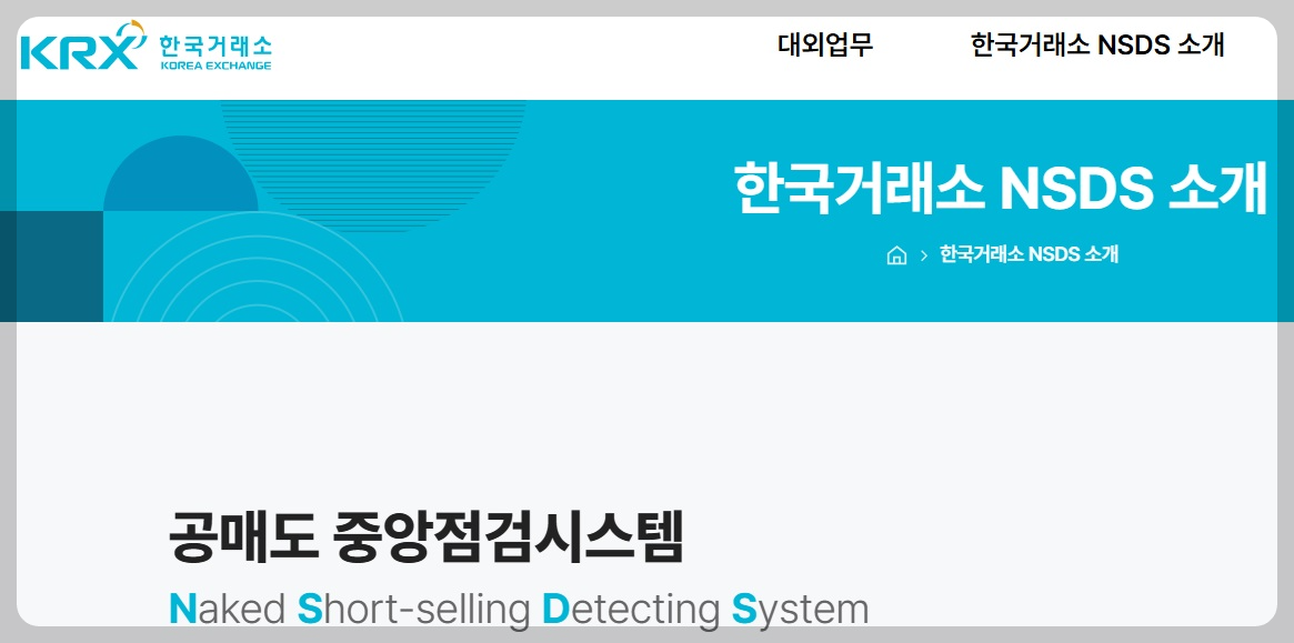 NSDS는 Naked Short-selling Detecting System의 약자로, 우리말로 **‘공매도 중앙점검시스템’**이라고 부릅니다.